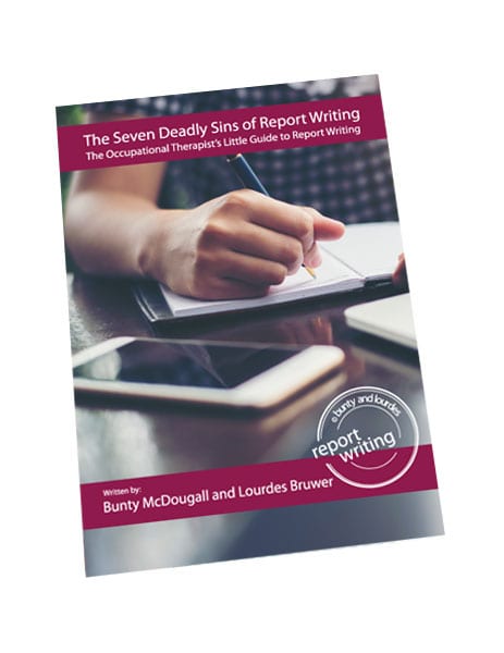 This guide is co-authored by occupational therapists Bunty McDougall and Lourdes Bruwer, who between them, have read and written a gazillion reports. It is written from a point of humility and fun, looking from the outside at their own reports and the crazy things they have written! It seeks to find ways to make our reports more reachable and more relevant. And since we spend countless numbers of hours writing occupational therapy assessment reports, this is something that deserves our attention.