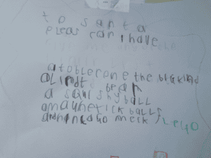 Let me tell you about Joe. He is 11 years old and this was his writing 5 weeks ago.